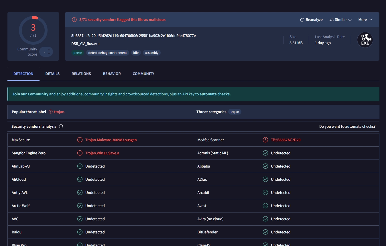 — антивирус мог его удалить или поломать